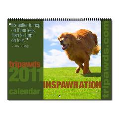 Sneaky little Cometdog… Yes, one calendar is complete, only because CafePress had already made the switch to 2012 pages, and the existing Tripawds Calendar still had 2011 images.